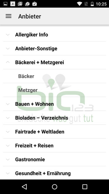 Wir stellen Ihnen nicht immer nur Apps vor, die gut sind, sondern auch solche, die eine gute Idee verfolgen, bei der Ausführung allerdings noch ein wenig nachbessern könnten. Eine solche Anwendung ist Bio123. Mit dieser soll es potenziellen Käufern von Bio-Produkten, in erster Linie von Lebensmitteln, leicht gemacht werden, die entsprechenden Anbieter zu finden. Am besten geht das, wenn die GPS-Peilung aktiviert ist und dadurch die Entfernung zum nächsten HofÂladen oder Bio-Markt angezeigt werden kann. Problem wie immer bei solchen Diensten: Ist die Datenbank aktuell, findet sich also jeder ÂAnbieter? Das bedarf intensiver Pflege. Wir Âhaben manche vergeblich gesucht. Das Finden erschwert, dass die Stichwortsuche erst in Âeiner Subkategorie funktioniert.