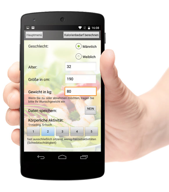 Am Anfang der Benutzung sollte das Öffnen des Gesundheitsrechner stehen. Hier Âkönnen Daten wie Alter, Geschlecht, Größe und ÂGewicht eingetragen und zusätzlich angegeben Âwerden, wie aktiv Sie sind. Daraus errechnet die App, sowohl die ideale Kalorienmenge, den viel Âzitierten Body Mass Index und auch die ideale Zusammensetzung (Anteil von Eiweiß, KohlenÂhydrat und Fett) der Lebensmittel.